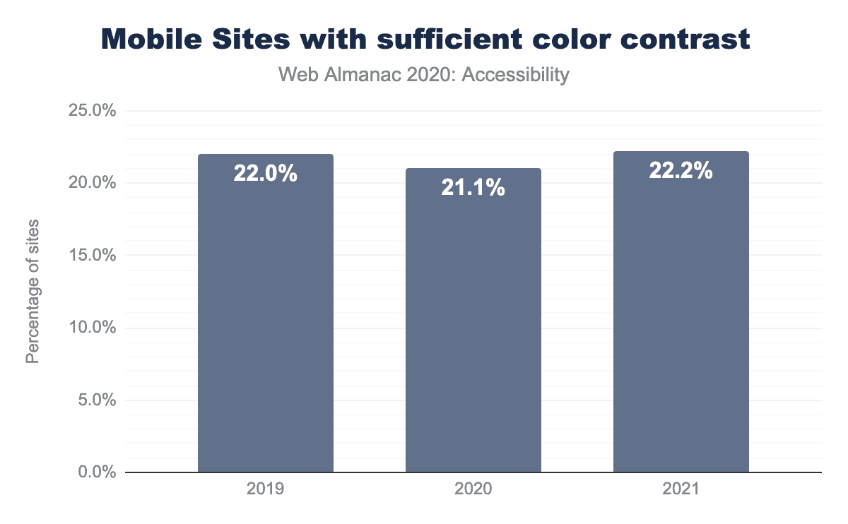 コンバージョン率を高める可能性があるにもかかわらず、77.8%のサイトで十分なカラーコントラストが使用されているかどうかのLighthouse監査に不合格となりました。これは、前年比でわずかに改善されています。
