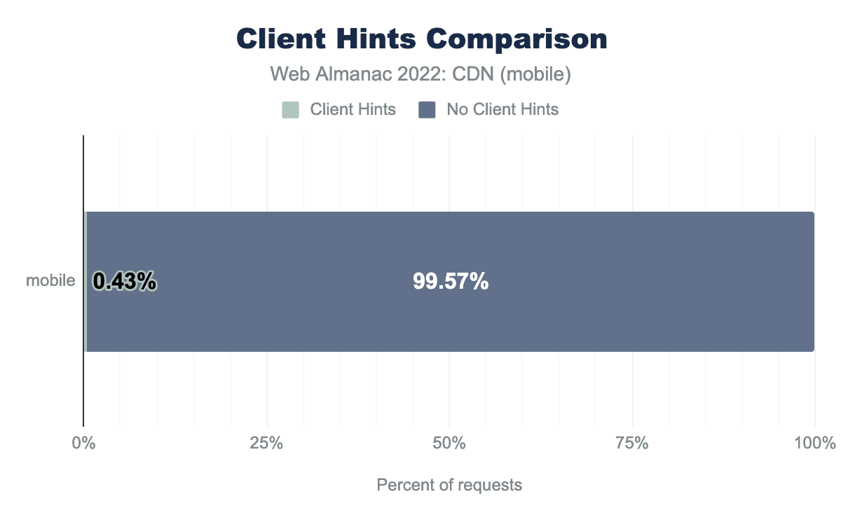 デスクトップとモバイルの両方のクライアントで、クライアントヒントの使用率は1%未満で、クライアントヒントの採用はまだ初期段階にあることを示しています。