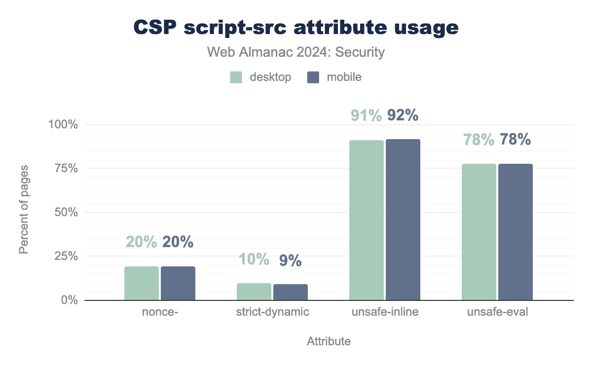 セキュリティポリシーの存在は、ウェブサイト管理者がサイトのセキュリティ確保に積極的に取り組んでいることを示唆していますが、これらのポリシーの適切な設定が不可欠です。次のセクションでは、セキュリティを損なう可能性のある、観測されたいくつかの構成ミスに焦点を当てます。